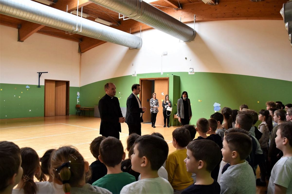 Također je prenio pozdrave požeškog biskupa msgr. Antuna Škvorčevića najmlađoj školi u Požeškoj biskupiji. Razgovarao je potom s učenicima o njihovim pozitivnim iskustvima i doživljajima u školi, te saslušao njihove prijedloge. Susret je završio zajedničkom molitvom.