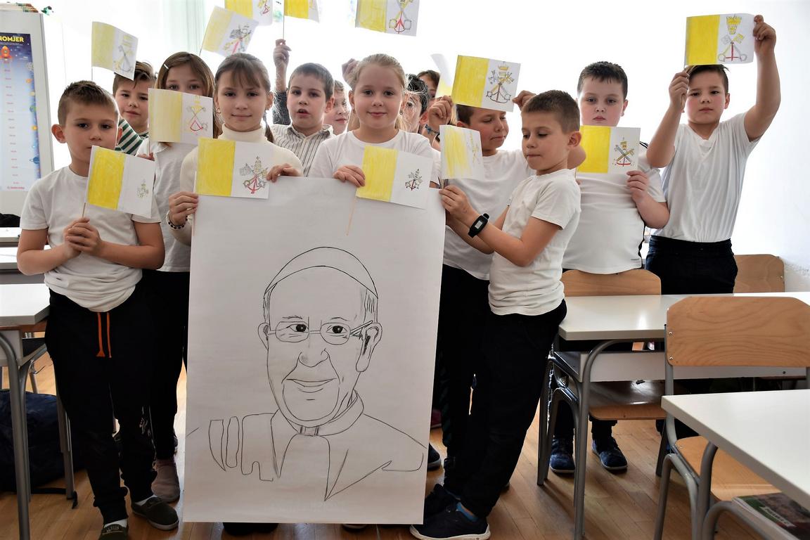 Tako su se prisjetili raznih poznatih događaja iz njegovog života te važnosti i značenja njegove službe kao nasljednika sv. Petra. Također su izrađivali zastavu Vatikana, gledali edukativne filmove o papama i Vatikanu, crtali i slikali lik Pape te sudjelovali u mnogim drugim likovnim i literarnim radovima. Obilježavanje je završeno zajedničkim fotografiranjem učenik i djelatnika Katoličke škole odjevenih u majice u bojama vatikanske zastave.