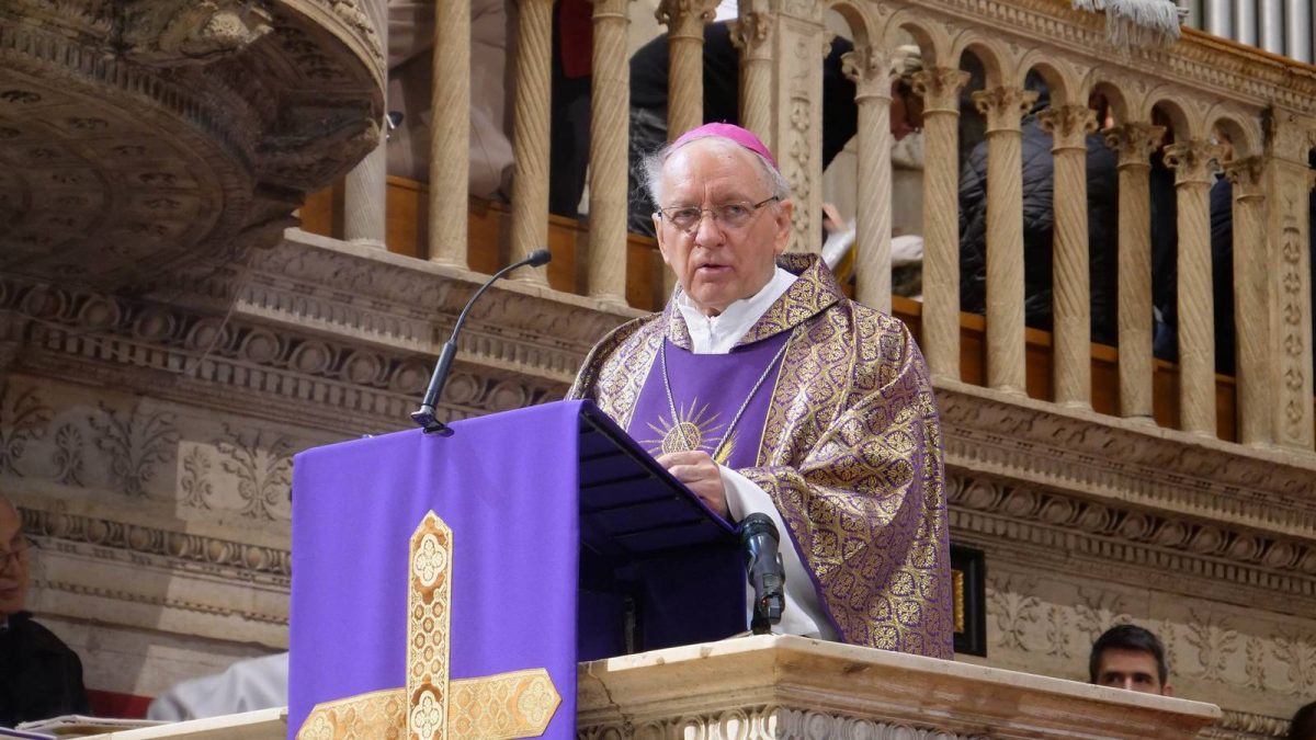 Potom je biskup uputio posebnu riječ pozdrava nazočnim kandidatima za prvu svetu pričest i potvrdu. Poručio im je kako je važno da oni tijekom ove korizme u neposrednoj pripravi za primanje svetih sakramenata učine konkretne korake, od kojih je znakovito današnje primanje svečanog obrasca Apostolskog vjerovanja i njihovo očitovanje da prihvaćaju kršćansku vjeru koju Crkva Katolička ispovijeda 2000 godina. Sve pak sudionike slavlja pozvao je neka se svrate u svoju savjest, priznaju Bogu da njihovu nutrinu nagriza sebičnost, stanuje u njoj mrak, duhovna nemoć, i da se pokaju kako bi čistim srcem sudjelovali u ovom svetom slavlju. U homiliji biskup je kazao kako svakodnevno u Hrvatskoj slušamo puno toga o brizi za čovjeka. S jedne strane državni dužnosnici kojima je zadaća organizirati javni život putem zakonâ i na druge načine nastoje konkretizirati ono što je potrebno u Hrvatskoj činiti za opće dobro građana.