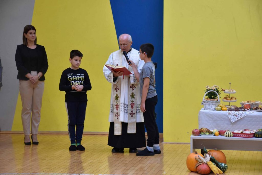 Obilježavanje je započelo u školskoj dvorani kratkim pozdravom ravnateljice Škole, te blagoslovom hrane koji je predvodio vlč. Milan Vidaković, župnik župe sv. Luke evanđelista. U svečanom ozračju, uz pjesme koje je s učenicima otpjevala s. M. Kristina Injić, učenice drugog razreda izrecitirale su molitvu i recitaciju zahvale.