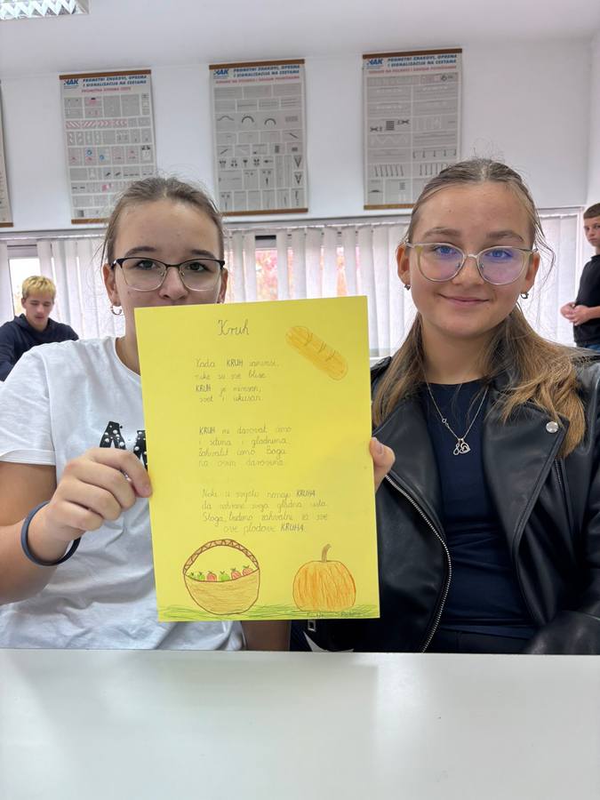 Najmlađi su izrađivali „pekarnice od papira” i likovne radove s motivima kruha i klasja, stariji su pisali „recepte za zahvalnost”, digitalne zahvalnice i stihove posvećene kruhu, dok su učenici u produženom boravku izrađivali pekarske proizvode od plastelina, pastelama slikali košare s plodovima te miješali tijesto od brašna i vode kako bi doživjeli proces nastanka kruha.