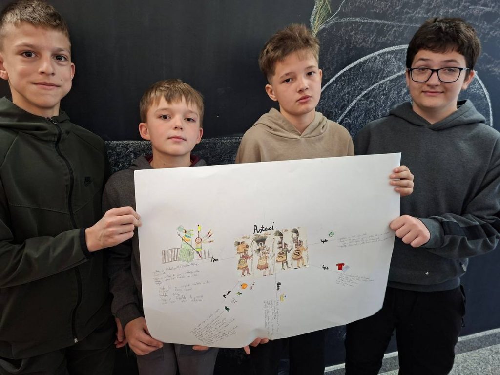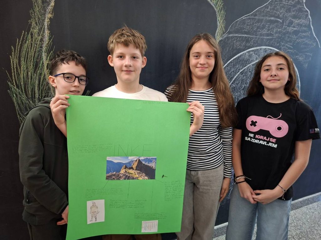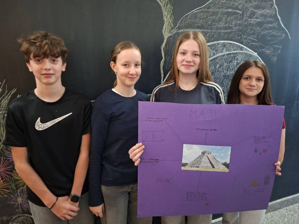 Dana 7. travnja učenici 6. razreda obradili su izbornu temu Civilizacije pretkolumbovske Amerike na malo drugačiji i zanimljiviji način. Najprije su samostalno proučili različite izvore o civilizacijama Maja, Asteka i Inka, prikupljajući važne informacije o njihovom načinu života, kulturi i postignućima.