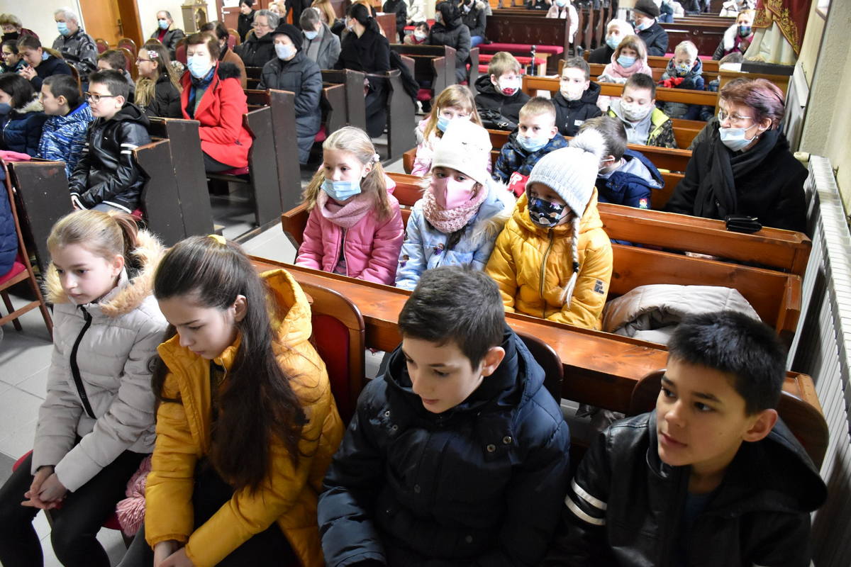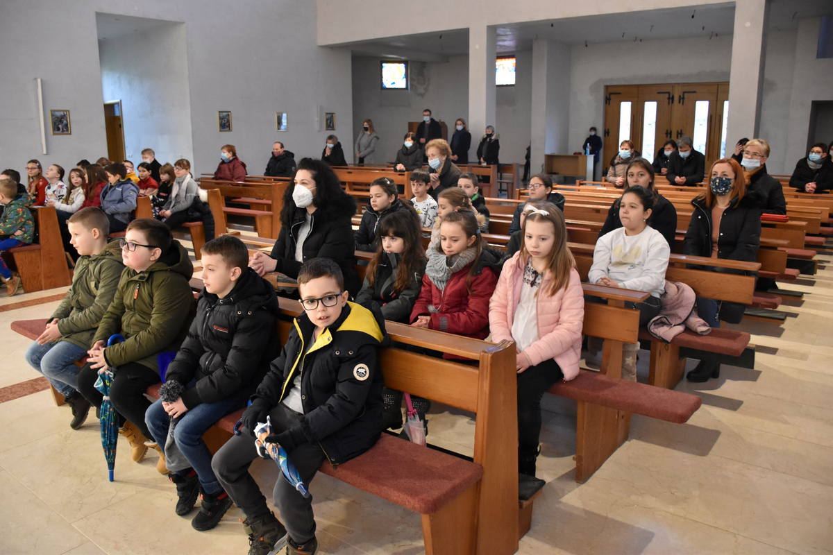 Uvodeći u misno slavlje, župni vikar Ivan pozdravio je okupljene vjernike, a napose sve učenike Katoličke škole te istaknuo važnost započinjanja korizmenog vremena potaknuvši sve riječima da ono bude obilježeno Božjom blizinom i ljubavlju u ljudskom srcu. U homiliji je, na temelju evanđeoskog ulomka, istaknuo tri koraka koja obilježavaju korizmeno vrijeme: molitvu, post i milostinju. Kazao je da spomenuti koraci po Isusovom primjeru moraju biti odraz poniznosti, a ne povod da se čovjek uzvisuje do te razine da ističe samo sebe i svoje zasluge. Nadodao je kako dobra djela govore sama za sebe te mogu biti primjer i poticaj da i drugi čine tako, ali su i svjedočanstvo Božje milosti koja djeluje u ljudima. Na kraju homilije okupljene je potaknuo da započeto korizmeno vrijeme bude prepoznato kao prigoda za žrtvu, obraćenje, činjenje djela milosrđa i intenzivniju molitvu.